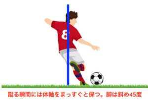 - 蹴り足: 足の内側を使って、ボールの側面を蹴ります。